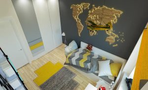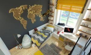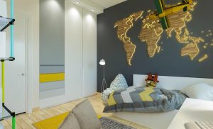 Яркая, свежая, современная детская для мальчика. Декоративная световая панель-карта – цена по запросу.
