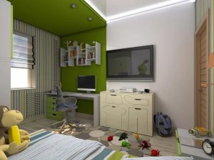 Яркая, функциональная, современная и приятная детская комната. Только самые положительные эмоции во время учебы, игры или сна… Вместительный шкаф, рабочее место, комод, прикроватная тумба. Материалы могут быть почти любые.