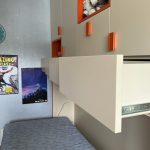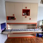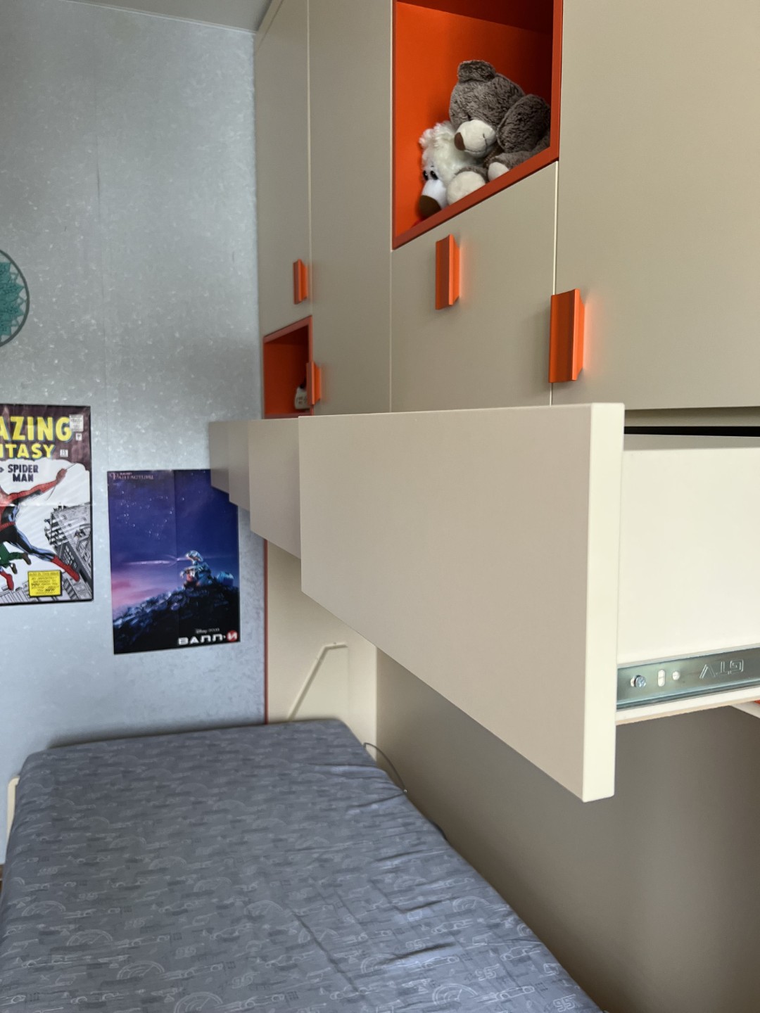 Купили комплект для детской: модульный шкаф, письменный стол и кровать с ящиками. Вместительность всех элементов радует, механизм трансформации кровати работает легко.