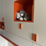 • изюминка проекта — ручки из массива дуба, выкрашенные в акцентный цвет проекта.