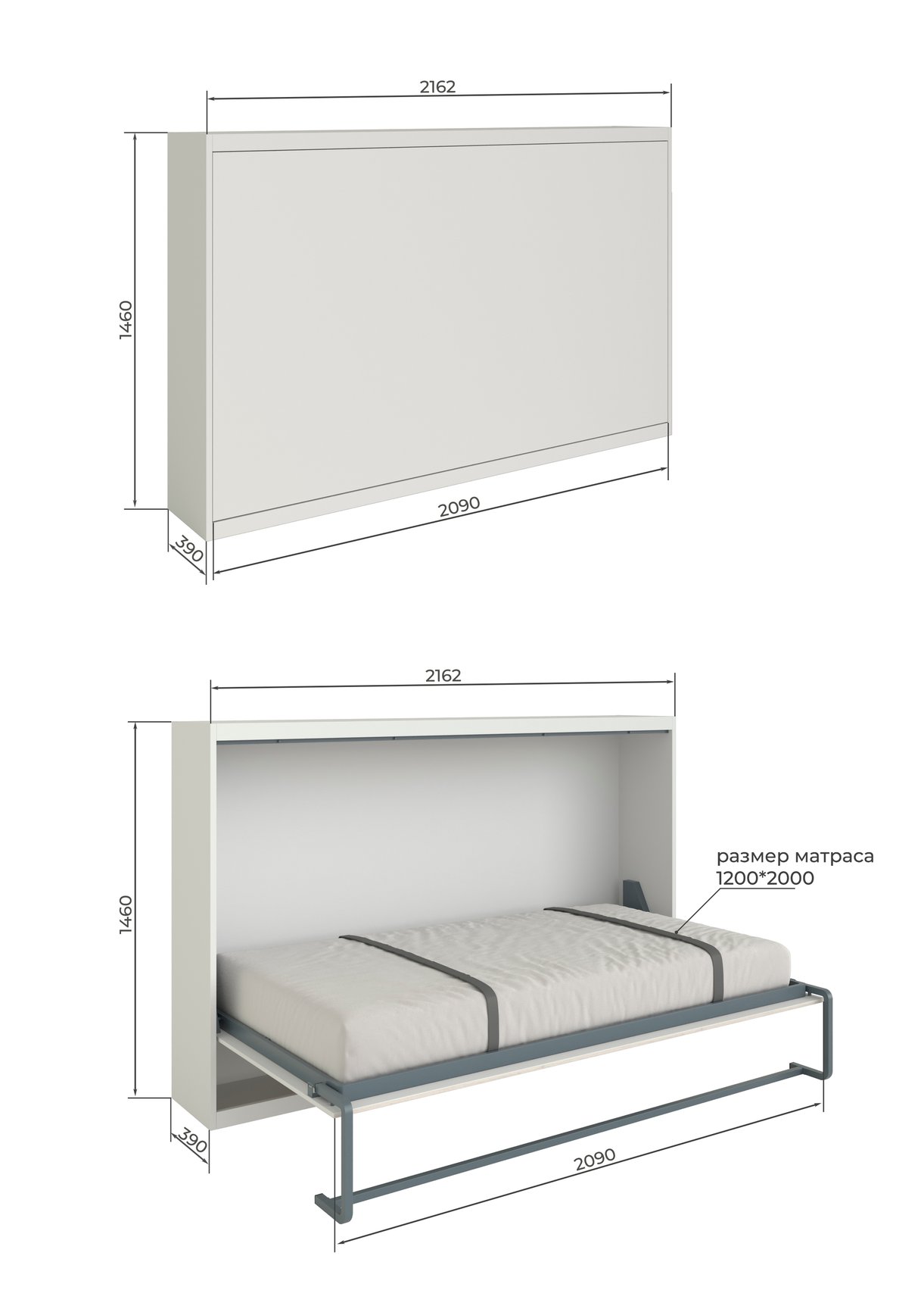 Главная / Каталог / Механизмы для шкаф-кроватей / Механизм для шкаф-кровати горизонтальный 1200x2000