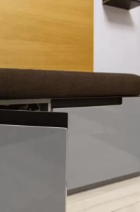 ✅Мягкое сиденье в прихожей нашего производства. Фасады под ней — крашенный МДФ с фрезировкой ручек.