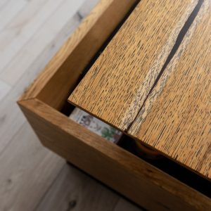 Запилы под углом 45 градусов делают эстетический вид стола еще более уникальным, поддерживают стиль прихожей.